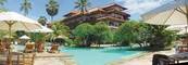 Situated on the enchanting island of Bali, this resort is located on the Tanjung Benoa/Nusa Dua Peninsula with its own white-sand beach and blue sea, near a coral reef. The resort offers accommodations in spacious studios and one- and two-bedroom apartments, all with air conditioning. Among the facilities are a large swimming pool with spa, three restaurants, including a sports bar, and satellite television in all rooms. Set in lush tropical gardens, this resort is perfect for a peaceful and relaxing holiday, yet only a short ride from the bustling town of Kuta.
